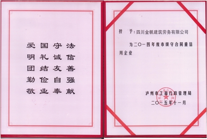 金帆【2014年度守合同重信用】...