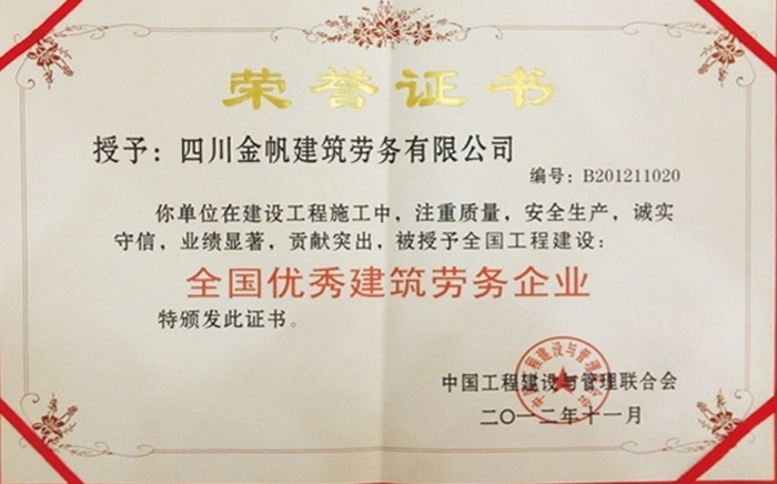 金帆全國優(yōu)秀建筑勞務(wù)企業(yè)