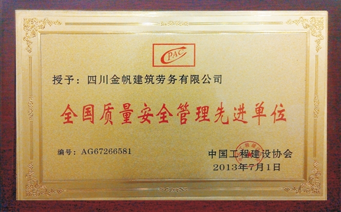 金帆全國質(zhì)量安全管理先進單位...